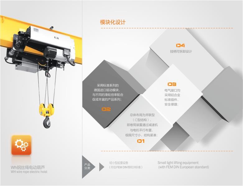 設(shè)備具備結(jié)構(gòu)緊湊、起吊單、雙速、合理有效起吊路程高,運(yùn)作穩(wěn)定等特性,應(yīng)用范圍廣,尤其在剛剛建立工業(yè)廠房中可合理有效提升路程相對(duì)高度,能夠減少建筑高度,減少建筑成